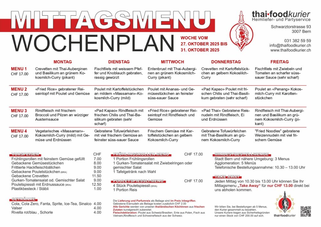 Ab 3 Menus: PLZ 3005, 3006, 3007, 3008, 3011, 3012, 3013, 3014, 3015, 3018, 3027, 3084, 3095, 3097, 3098, 3172