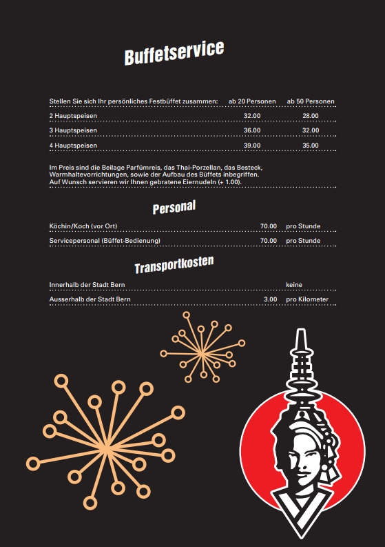 Das reichhaltige Angebot wird Sie überzeugen. Gerne besprechen und planen wir mit Ihnen die thailändische Verköstigung Ihres Anlasses.